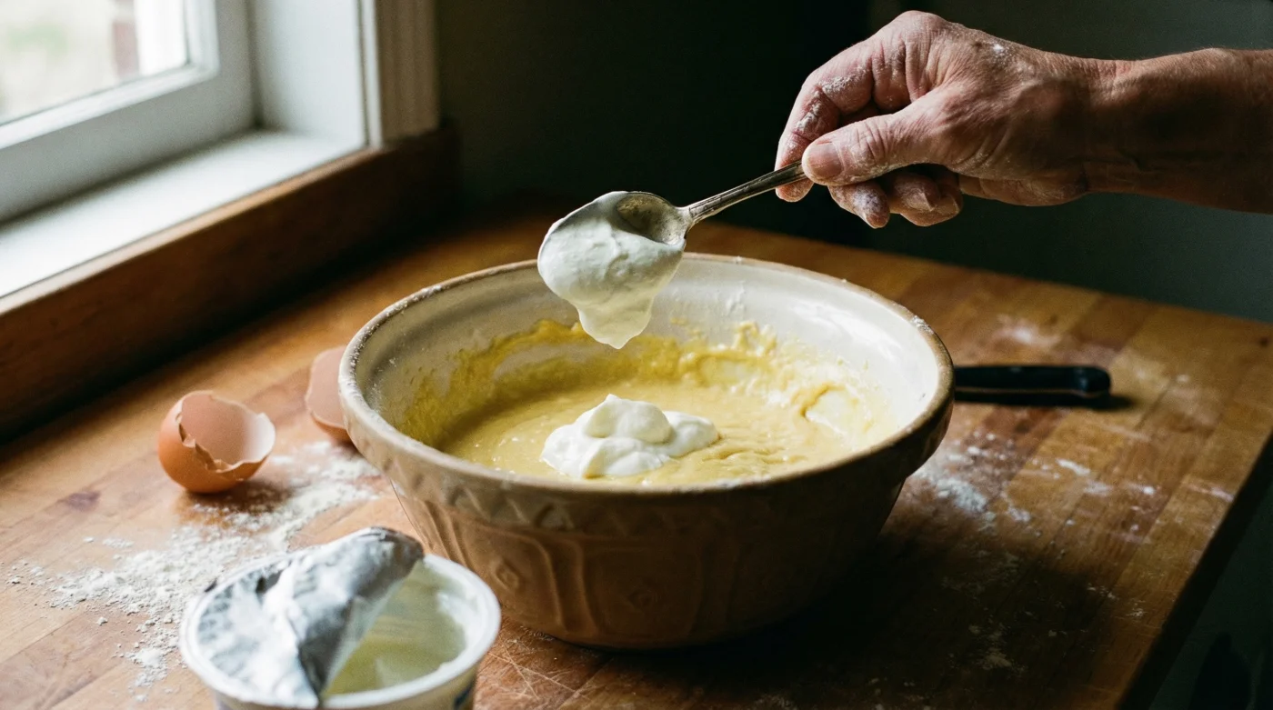 To execute this technique perfectly, begin by bringing 250ml of full-fat strained Greek yogurt to room temperature. If your recipe calls for 250g of butter, use 125g of butter and 125g of yogurt for the safest, most delicious transition. Cream your butter and sugar until pale, then beat in your eggs. Here is the critical step: fold the yogurt in alternately with your dry ingredients (flour and raising agents).